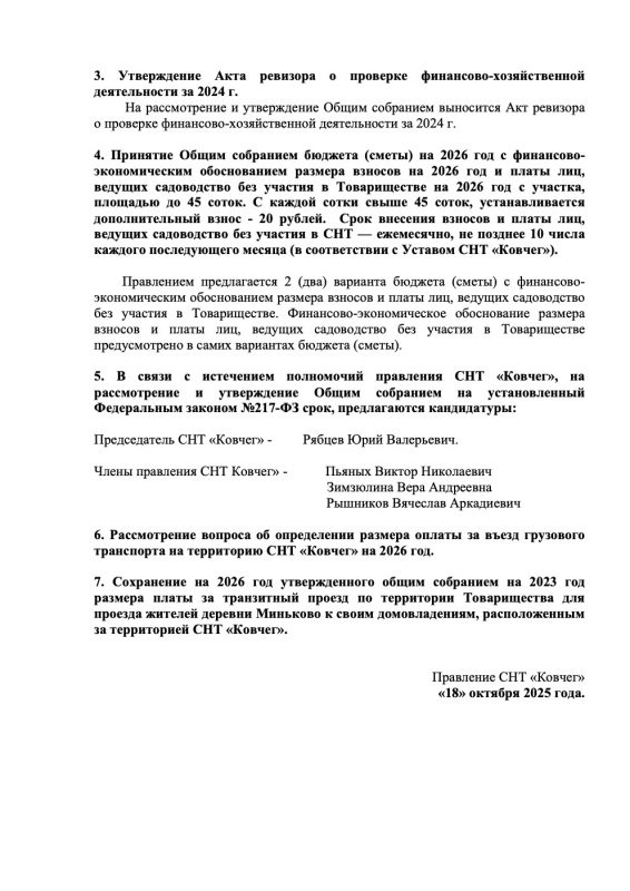 19 Окт Уведомление о проведении очередного общего собрания СНТ «КОВЧЕГ» Уважаемые жители СНТ «Ковчег»!